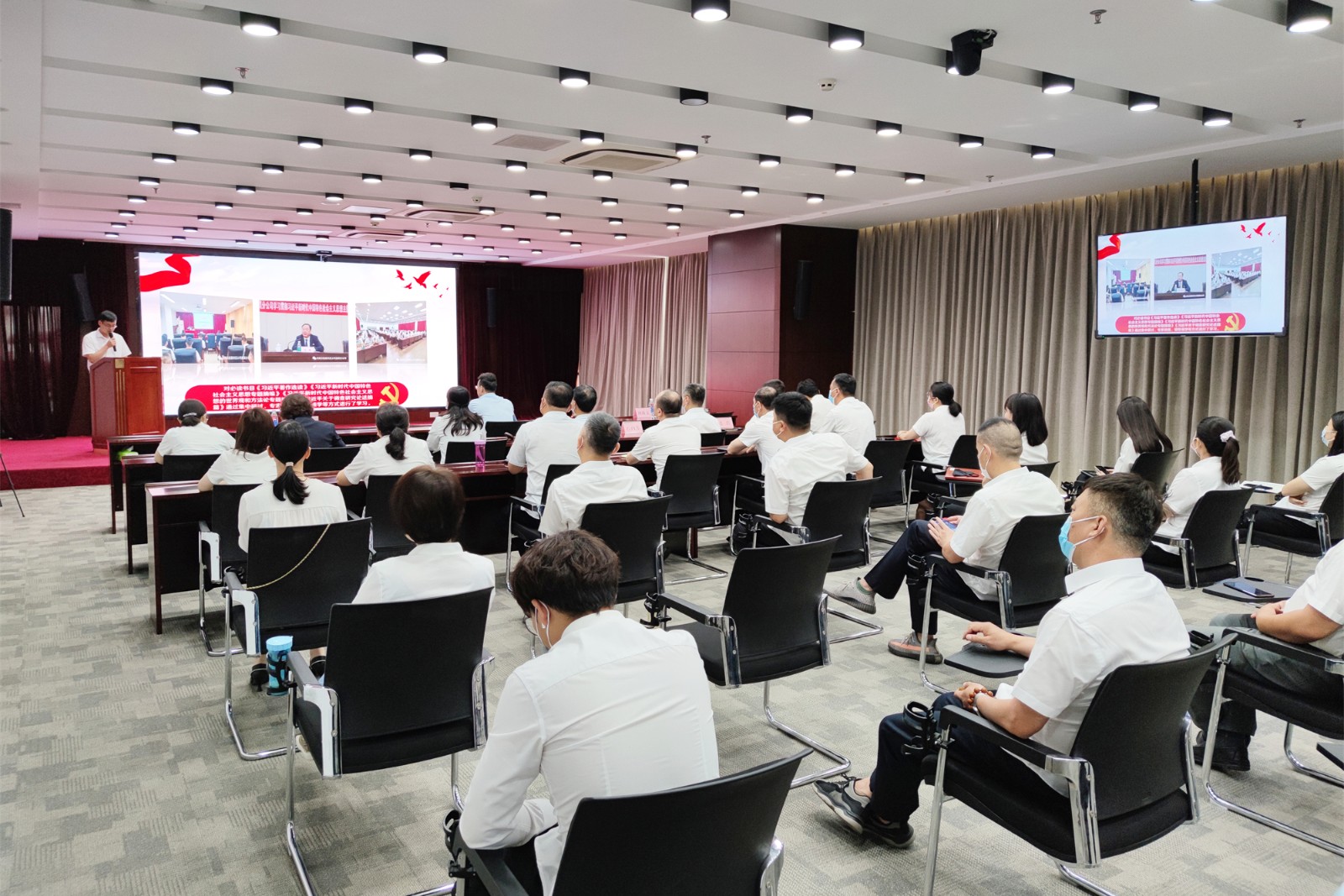 來源: 本站 發(fā)布時間: 2023-06-196月19日,文化傳媒公司黨總支書記、董事長王剛到文化傳媒公司綜合事務部黨支部講授黨課《全面系統(tǒng)掌握習近平新時代中國特色社會主義思想的科學體系》。王剛書記以《習近平著作選讀》生動呈現(xiàn)了習近平新時代中國特色社會主義思想創(chuàng)立和發(fā)展的時代背景,系統(tǒng)反映了習近平新時代中…