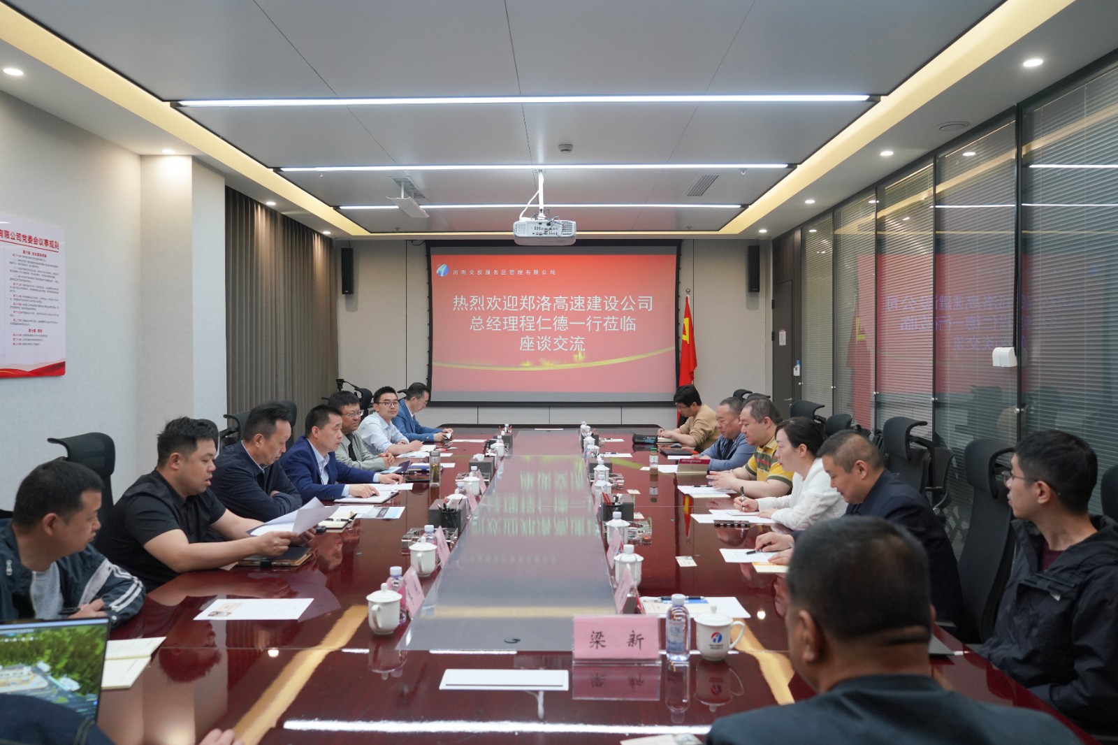 河南交投中原高速鄭洛建設有限公司總經理程仁德一行到公司座談交流