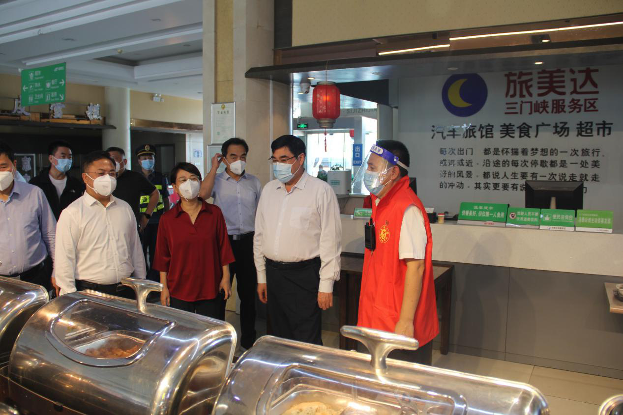三門峽市委副書記、市長范付中等到公司三門峽服務區、澠池西停車區北區、豫陜界服務區檢查指導疫情防控工作