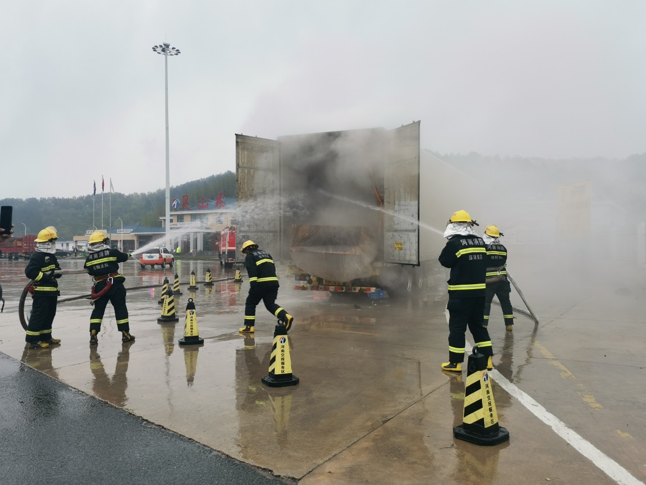 服務(wù)區(qū)立即啟動應(yīng)急預(yù)案,一是組織應(yīng)急小組成員快速疏散遇險(xiǎn)快遞車輛附近的其他車輛,同時安排相關(guān)人員放置交通警示樁隔離起火車輛。二是與駕駛員溝通將車頭與車廂分離。三是安排專人在廣場和下道口處引導(dǎo)車輛避開起火車輛,安全駛?cè)敕?wù)區(qū)。所有應(yīng)急處置程序一氣呵成,為救援自燃車輛贏得了寶貴時間。